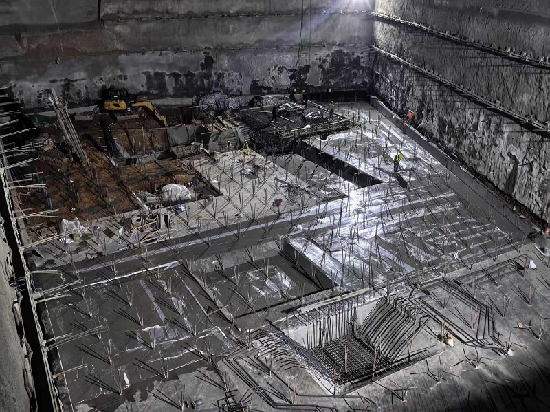嚴絲合縫保質(zhì)量。在地下室防水施工區(qū),防水卷材鋪設(shè)同步全速推進。施工班組采用“濕粘法”及“熱熔法”工藝,重點把控陰陽角、后澆帶等關(guān)鍵部位,實施“鋪設(shè)-檢測-復(fù)驗”閉環(huán)管理。項目總工帶隊開展夜間巡查,“必須要確保零空鼓、無滲漏,以‘毫米級’標(biāo)準(zhǔn)筑牢防水屏障,為建筑穿上‘金鐘罩’?!?/span>