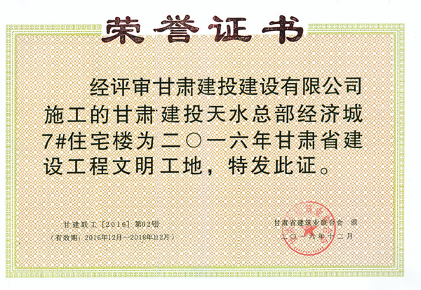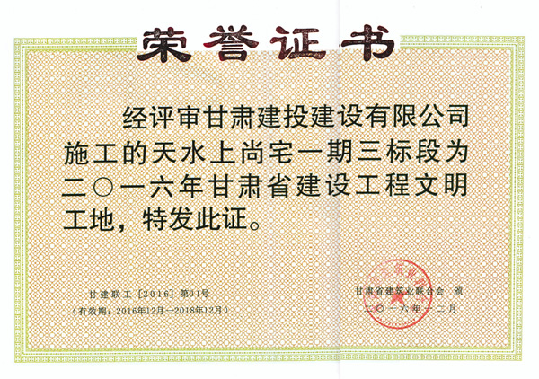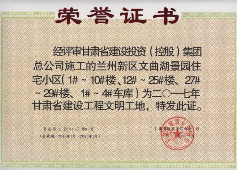 自2014年以來(lái),二安公司承建了平?jīng)雎肺Ef房改造工程2#商住房項(xiàng)目的安裝工程、蘭州新區(qū)石化產(chǎn)業(yè)園7#樓項(xiàng)目安裝工程、蘭州新區(qū)文曲湖景園住宅小區(qū)4#、10#樓項(xiàng)目安裝工程、天水上尚宅一期三標(biāo)段5#、9#、8#、12#樓項(xiàng)目安裝工程、天水總部經(jīng)濟(jì)城7號(hào)樓項(xiàng)目安裝工程等10余項(xiàng)項(xiàng)目安裝。其中2015年蘭州新區(qū)石化產(chǎn)業(yè)園區(qū)安置房項(xiàng)目被評(píng)為甘肅省建設(shè)工程文明工地;2016年平?jīng)雎肺Ef房改造房(建工瑞景2#樓)項(xiàng)目,獲得甘肅省AAA級(jí)安全文明工地、飛天獎(jiǎng);天水總部經(jīng)濟(jì)城二期7#樓項(xiàng)目,獲得甘肅省AAA級(jí)安全文明工地;2017年文曲湖4#、10#樓工地被甘肅建投建設(shè)有限公司評(píng)為2016年度優(yōu)秀項(xiàng)目經(jīng)理部;2017年天水上尚宅榮獲甘肅省文明工地稱號(hào);2018年經(jīng)評(píng)審甘肅省建設(shè)投資(控股)集團(tuán)總公司施工的蘭州新區(qū)文曲湖景園住宅小區(qū)(1#-10#、12#-25#、27#-29#、1#-4#車庫(kù))為2017年甘肅省建設(shè)工程文明工地;深受建設(shè)單位和社會(huì)各界的信賴與好評(píng)。全公司涌現(xiàn)出一大批優(yōu)秀項(xiàng)目經(jīng)理部、優(yōu)秀項(xiàng)目經(jīng)理和先進(jìn)個(gè)人。