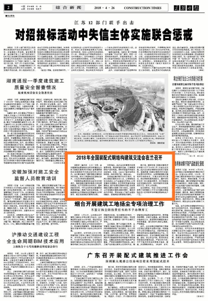 建筑時(shí)報(bào):2018年全國裝配式鋼結(jié)構(gòu)建筑交流大會(huì)在蘭召開