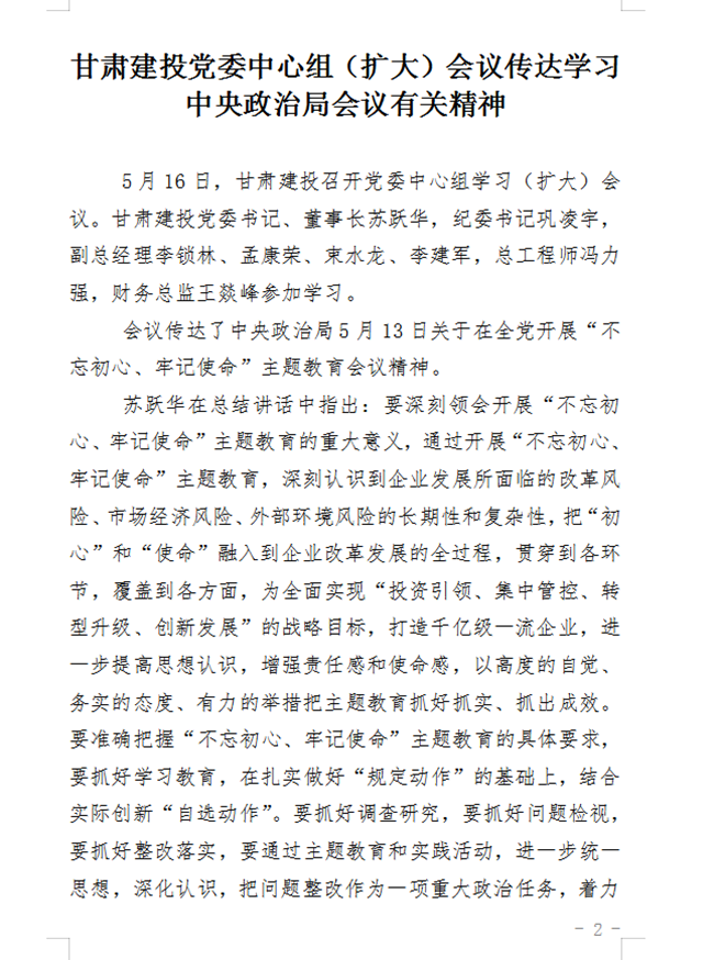 【不忘初心 牢記使命】甘肅建投黨委中心組(擴大)會議傳達(dá)學(xué)習(xí)中央政治局會議有關(guān)精神