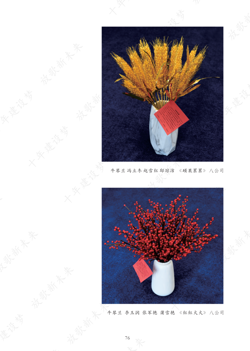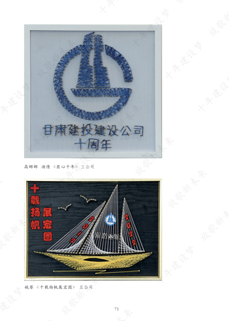 為更好聚焦企業(yè)發(fā)展變遷,深挖企業(yè)精神內(nèi)涵,引導(dǎo)全司職工從企業(yè)十年發(fā)展的歷程軌跡中汲取力量,以強(qiáng)烈的責(zé)任感和飽滿的精神狀態(tài)投入到各項(xiàng)工作中。根據(jù)公司黨委關(guān)于《慶祝建司十周年主題宣傳及系列活動(dòng)實(shí)施方案》的通知要求,建設(shè)公司工會(huì)組織開(kāi)展了慶祝建司十周年“征文活動(dòng)”、“第二屆職工藝術(shù)作品展”等活動(dòng)。此次系列活動(dòng)共收到140余名職工的168件作品,包括征文、書(shū)法、油畫(huà)、國(guó)畫(huà)、攝影、十字繡、剪紙、小制作等十多個(gè)種類。最終經(jīng)過(guò)各基層工會(huì)主席評(píng)選確定入冊(cè)作品155件,其中攝影作品38件、書(shū)法作品38件,美術(shù)作品26件,手工作品17件,征文作品36篇。這些作品創(chuàng)意新穎,主題突出,內(nèi)容豐富,充分體現(xiàn)了企業(yè)精神譜系和廣大職工的精神面貌,從不同角度展示了全司廣大職工的聰明智慧和藝術(shù)才華,反映了職工們心系企業(yè)、愛(ài)崗敬業(yè)、構(gòu)建和諧社會(huì)的熾熱情懷。