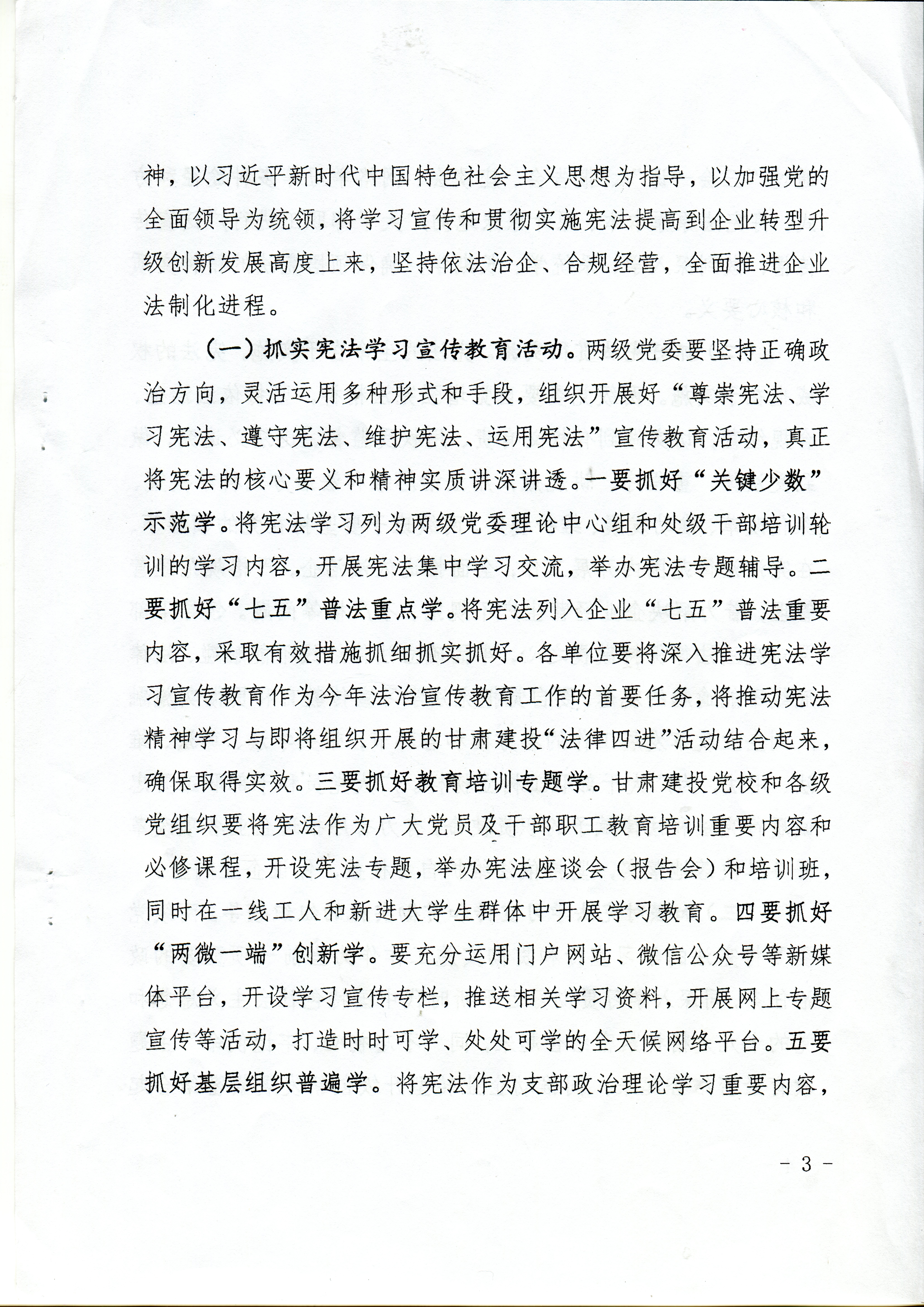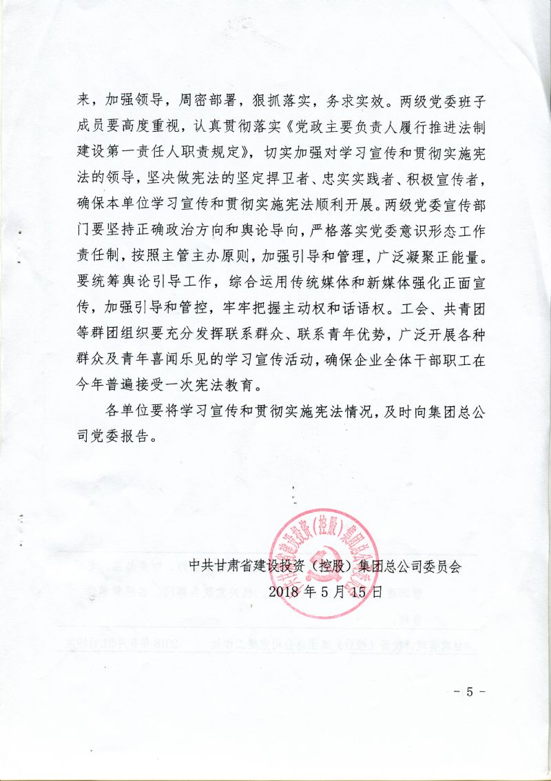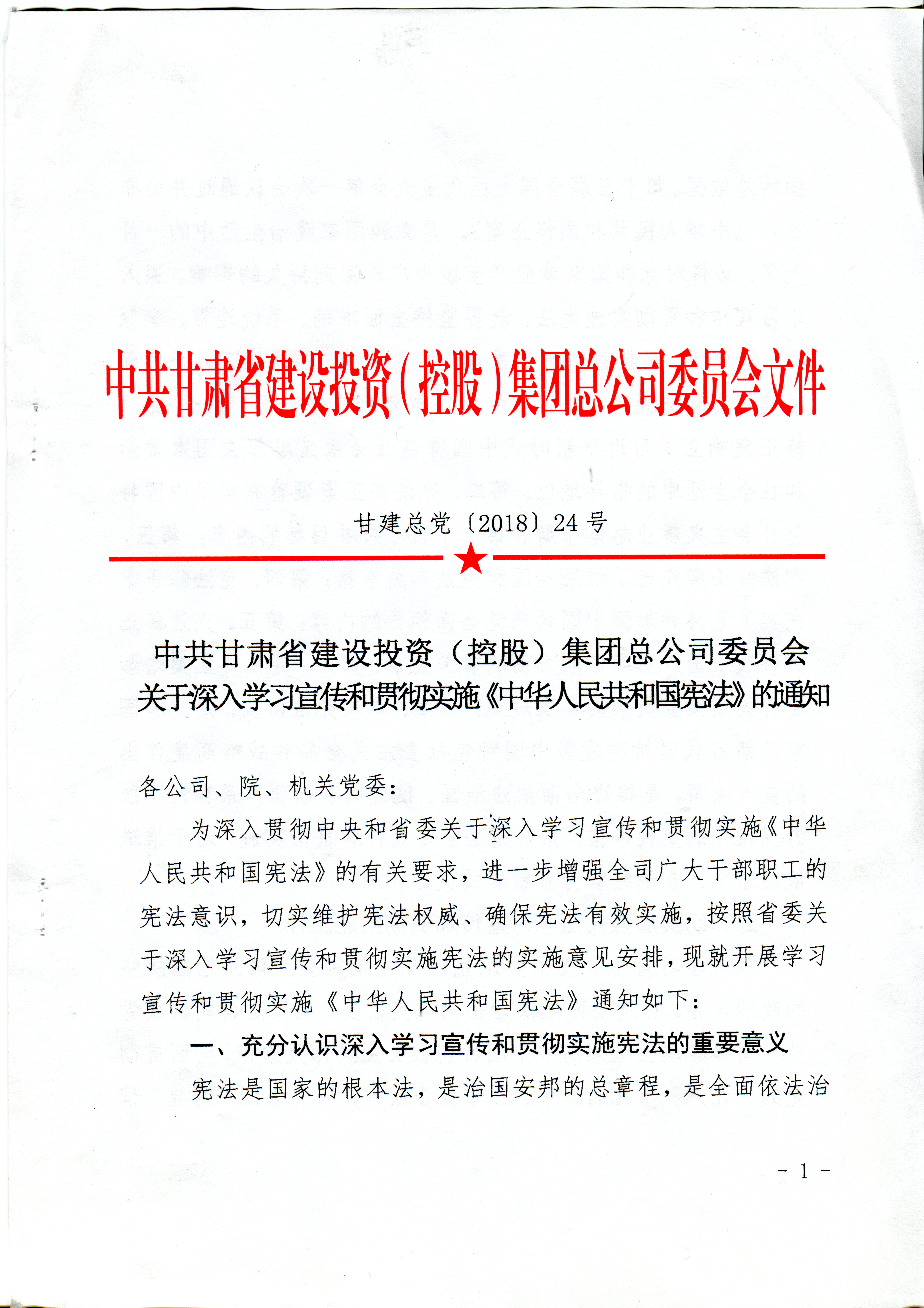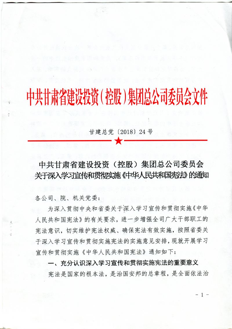 中共甘肅省建設(shè)投資(控股)集團總公司委員會關(guān)于深入學(xué)習(xí)宣傳和貫徹實施《中華人民共和國憲法》的通知
